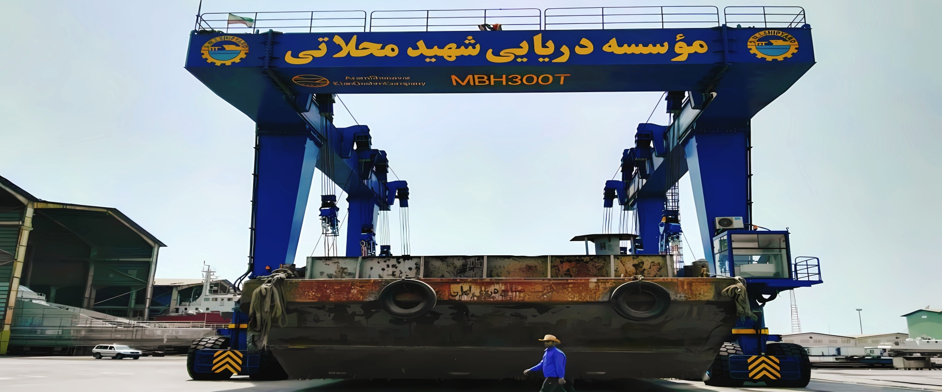 游艇搬運(yùn)起重機(jī)具有自動力、多點提升、全液壓傳動,上部結(jié)構(gòu)為雙門架“U”型連接框架,以便于在碼頭或廠區(qū)滿足不同船型(如帆船)的提升作業(yè)需求。