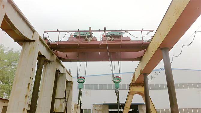 雙小車起重機(jī)符合GB/T3811《起重機(jī)設(shè)計(jì)規(guī)范》和GB14405《通用橋式起重機(jī)》的要求,適用于工礦車間或露天倉(cāng)庫(kù)吊運(yùn)長(zhǎng)件物品(如風(fēng)電塔筒、管樁、電線桿、鋼模、鋼管、木材、紙卷等)。在采取防風(fēng)、防雨措施后,可用于露天環(huán)境中。